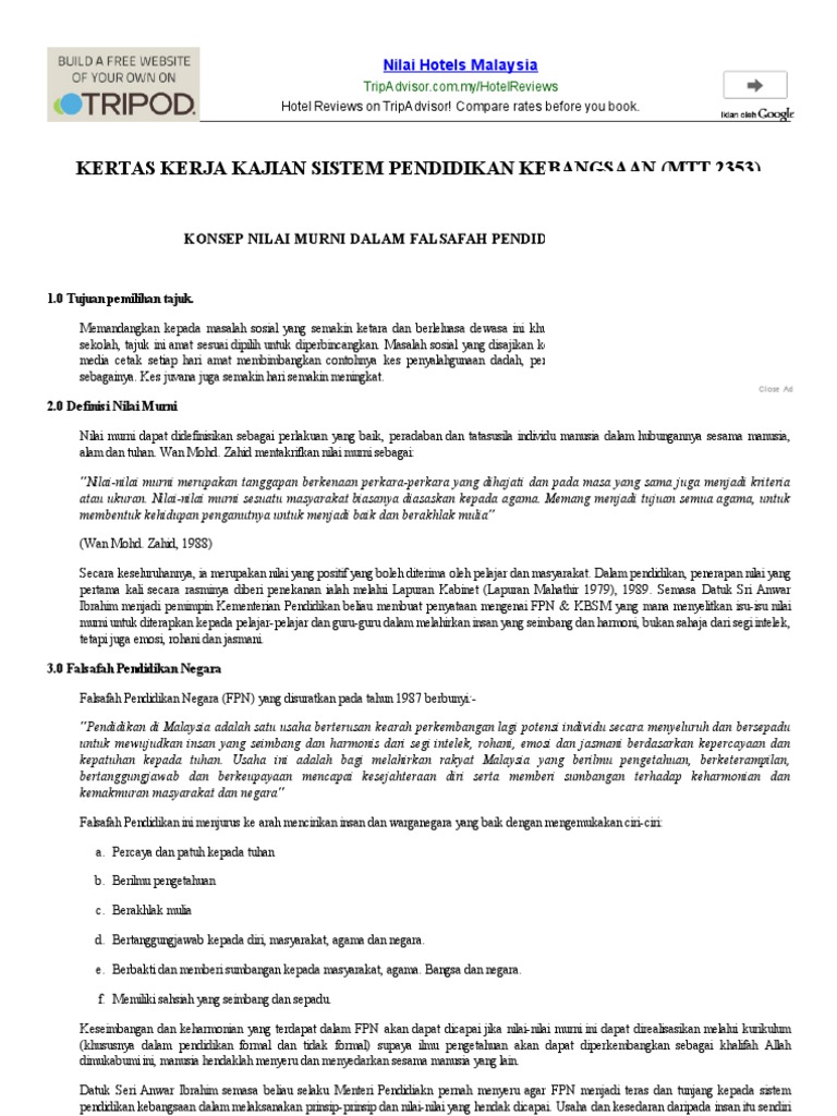 Pdf Konsep Penerapan Dan Penghayatan Nilai Nilai Murni Berasaskan Falsafah Pendidikan Kebangsaan Fpk