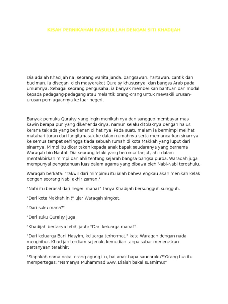 Kisah Pernikahan Rasulullah Dengan Siti Khadijah Docx
