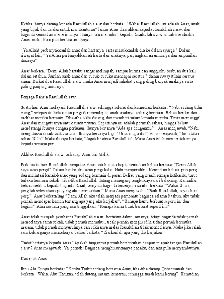 Pesan Bonda Doa Rasulullah Kepada Anas Bin Malik Ketika فيسبوك