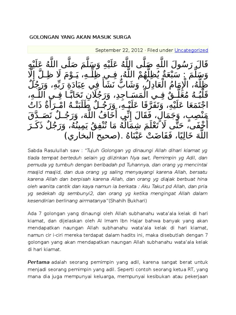 Kumpulan Makalah Jurusan Tafsir Hadits 7 Golongan Dalam Naungan Allah Di Hari Kiamat