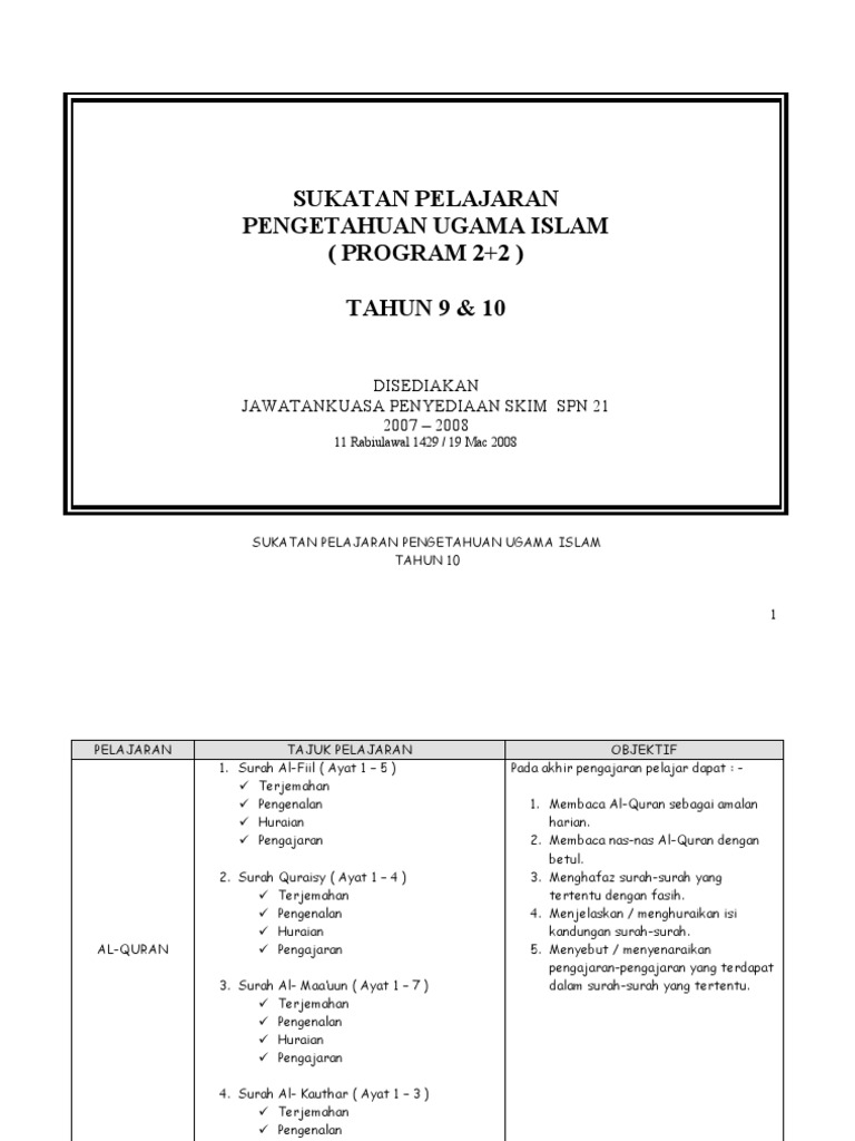 Mib Sukatan Pelajaran Tahun 9 10 2 Years