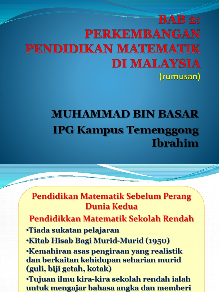 Asal Usul Pendidikan Matematik Di Malaysia